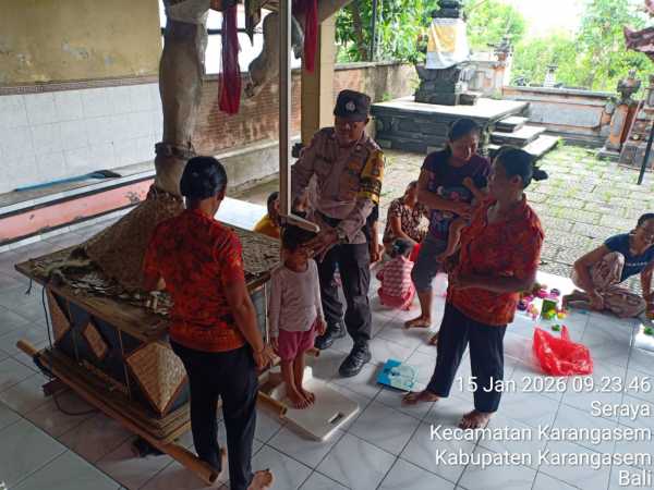 Dukung Pencegahan Stunting, Bhabinkamtibmas Desa Seraya Turut Serta Dalam Posyandu
