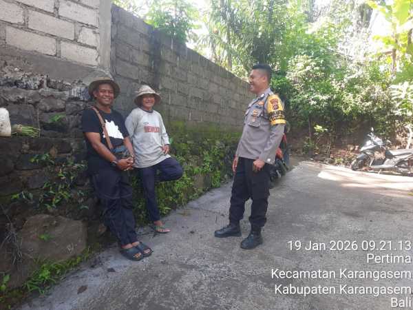 Polda Bali - Polres Karangasem -Polsek Kubu, Bhabinkamtibmas Desa Ban Polsek Kubu Polres Karangasem Aipda I Nengah Budi Artana melaksanakan giat sambang sekaligus menyalurkan Donasi Dana Sembako kepada warga tidak mampu, di Lingkungan Br. Dinas Pucang Desa Ban Kubu Karangasem, Kamis (23/1/2025(